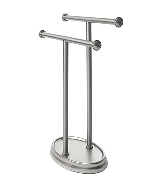 タオルツリーには、2枚のタオルを快適に掛けるスペースがあるだけでなく、小さなアイテムを収納するためのトレイとして機能する便利なベースもあります。