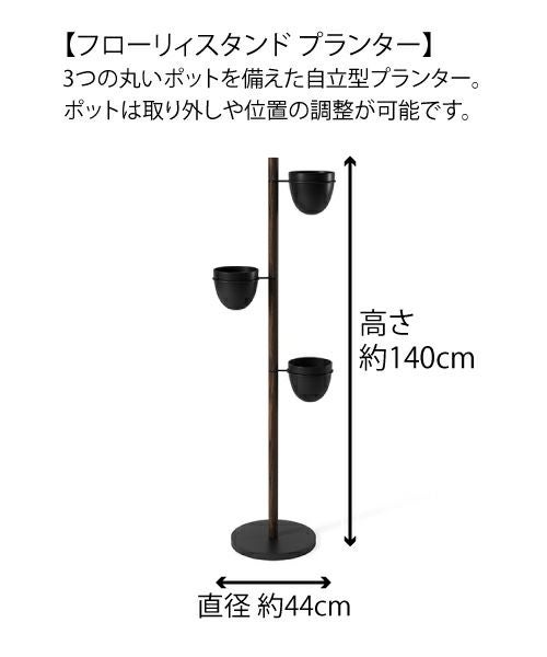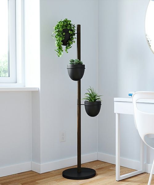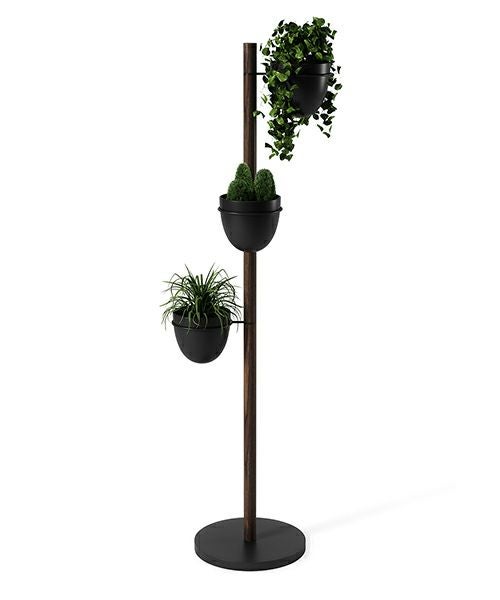パウダーコーティングされたメタルと天然のブナ材で作られたフローリィスタンド プランターには、植物をしっかりと固定するために重量のあるベースと頑丈なポールで作られています。