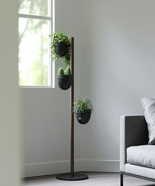 それぞれのポットは、植物が植えやすいように取り外し可能で、スペースに合わせてプランターの位置の調整も可能です。縦方向のスペースを利用して、複数の植物を1つにまとめてディスプレーができます。