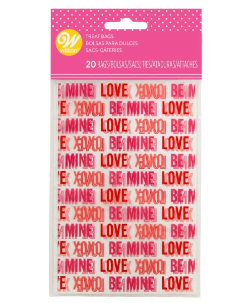 ハート柄のビニル製ミニ袋20枚セット。バレンタインにお菓子やプレゼントを入れて配るのにぴったり。