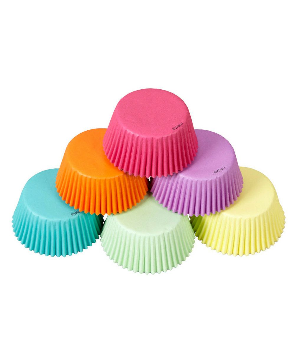 パステルカラーの紙製マフィンカップが6種類入った150枚セット。ケーキ生地を流しこみWiltonレギュラーマフィンパンにセットして焼きます。水に長時間つけたり火気に近づけないでください。直火で使用しないでください。