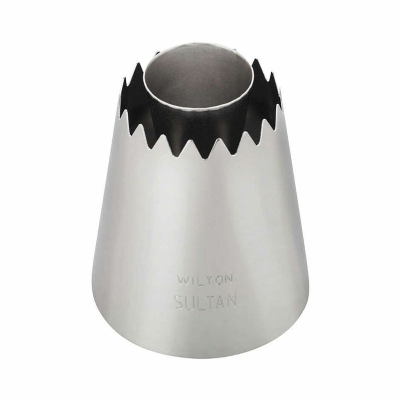 サルタン口金は、フランスの伝統菓子ルリジューズ(Religeuse)という大小のシュークリームを重ねる際、バタークリームを間に絞るのに使われる口金です。 日本ではロミアスと呼ばれるクッキー絞りにも同じ口金が使われることが多く、真ん中にチェリーやジャム、スプリンクル、チョコレートなどを入れたクッキーが人気です。