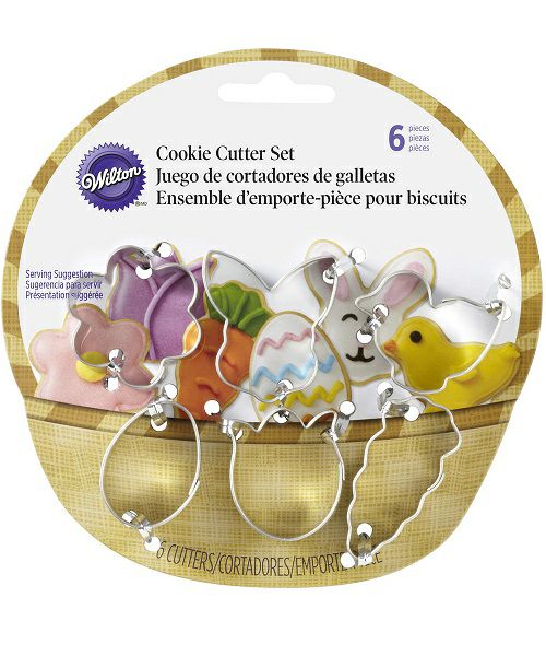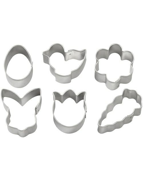 イースターモチーフのミニサイズのクッキー型6個セット。約3~4cmのタマゴ、ヒヨコ、フラワー、ニンジン、ウサギ、チューリップ。
