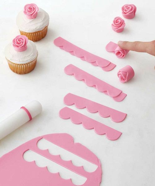 ウィルトンロールフォンダンや、ガムペーストを伸ばしてカットし、くるくると丸めるだけで簡単にかわいいローズを作ることができるカッター。両面リバーシブルで使えるので、花びらのふちがフリフリのローズも作ることができます。