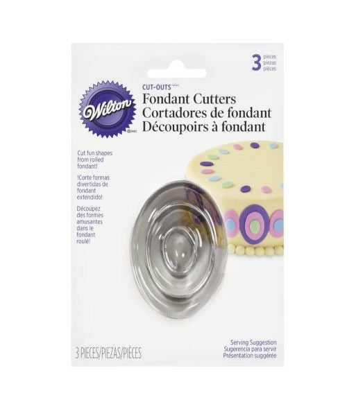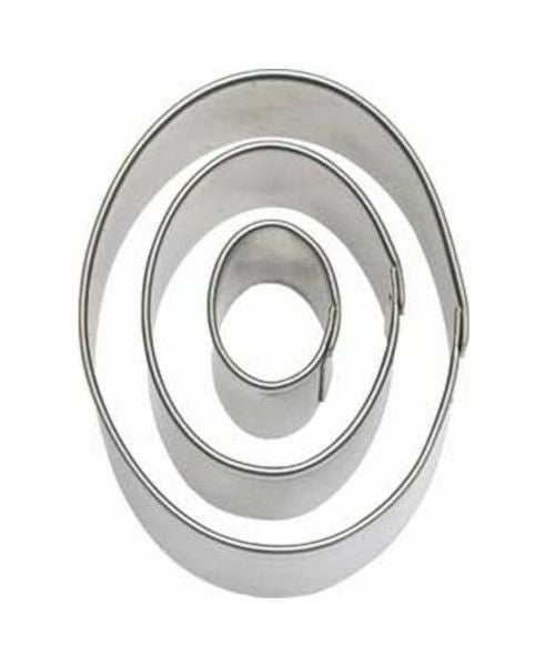 4.3×5.6cm、3×3.6cm、1.2×1.9cmのオーバル型のスチール型3個セット。 ウィルトンロールフォンダンやクッキー生地を抜きやすい薄いスチール製です。 同じ形のサイズ違いなので、ステンドグラスクッキーやインレイ、オーバーレイ飾りを作るのに適しています。 使用後は中性洗剤で洗い水けを拭き取りしっかり乾かしてから保管してください。 強い力を加えたり衝撃を与えると変形しますので取り扱いに注意してください。