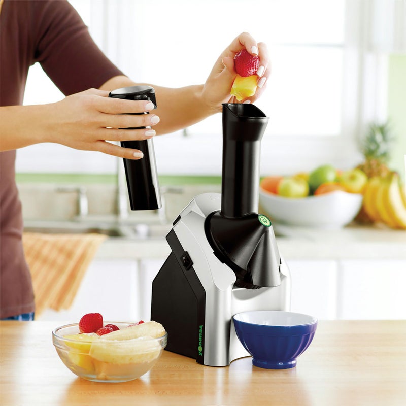 大人気のフルーツデザートマシン。 オールシーズン、いつでも手軽にクリーミーな新食感のヘルシーデザートをつくれます。 取り外して丸洗いOK。食洗機にも対応していてお手入れ簡単!! 【果物と野菜でつくる新食感スイーツ<ヨナナス>の作り方】 ①FREEZE 凍らせたお好みの果実や野菜を用意! ②DROP 冷凍の果物や野菜をヨナナスメーカーに入れる。 ③SQUASH つぶすだけでできあがり! 連続稼動時間:2分