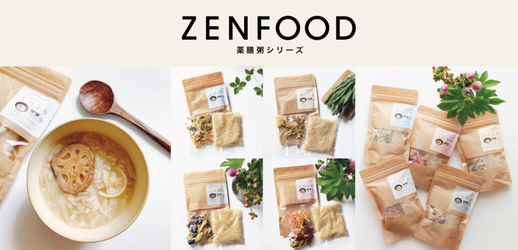 ZENFOODは、YAKUZEN(薬膳)の知恵をベースに作られたフードパックシリーズです。最大の特徴は、「陰陽五行」の考えに基づいたお粥やスープのキットになっていること。