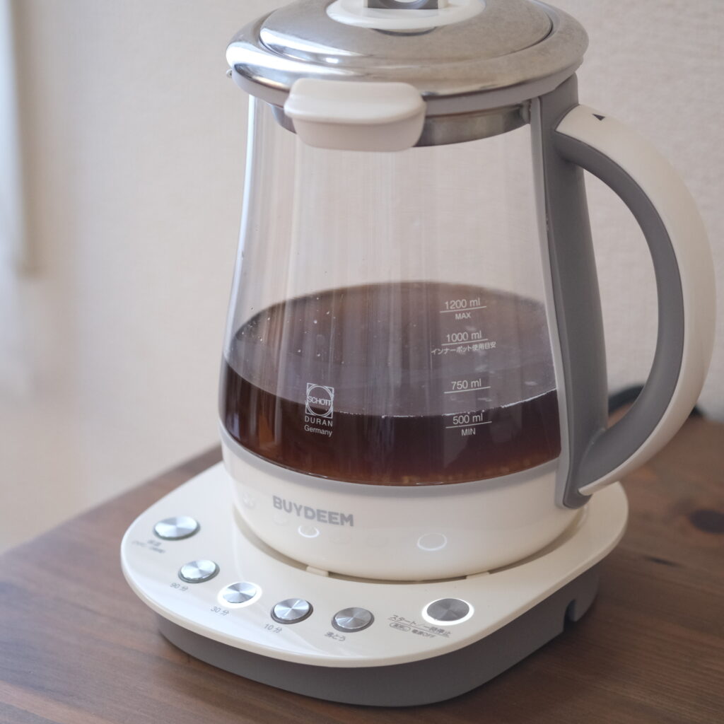 ❷BUYDEEM薬膳マルチポットに米とお茶を入れ、蓋をして30分ボタンとスタートを押す。