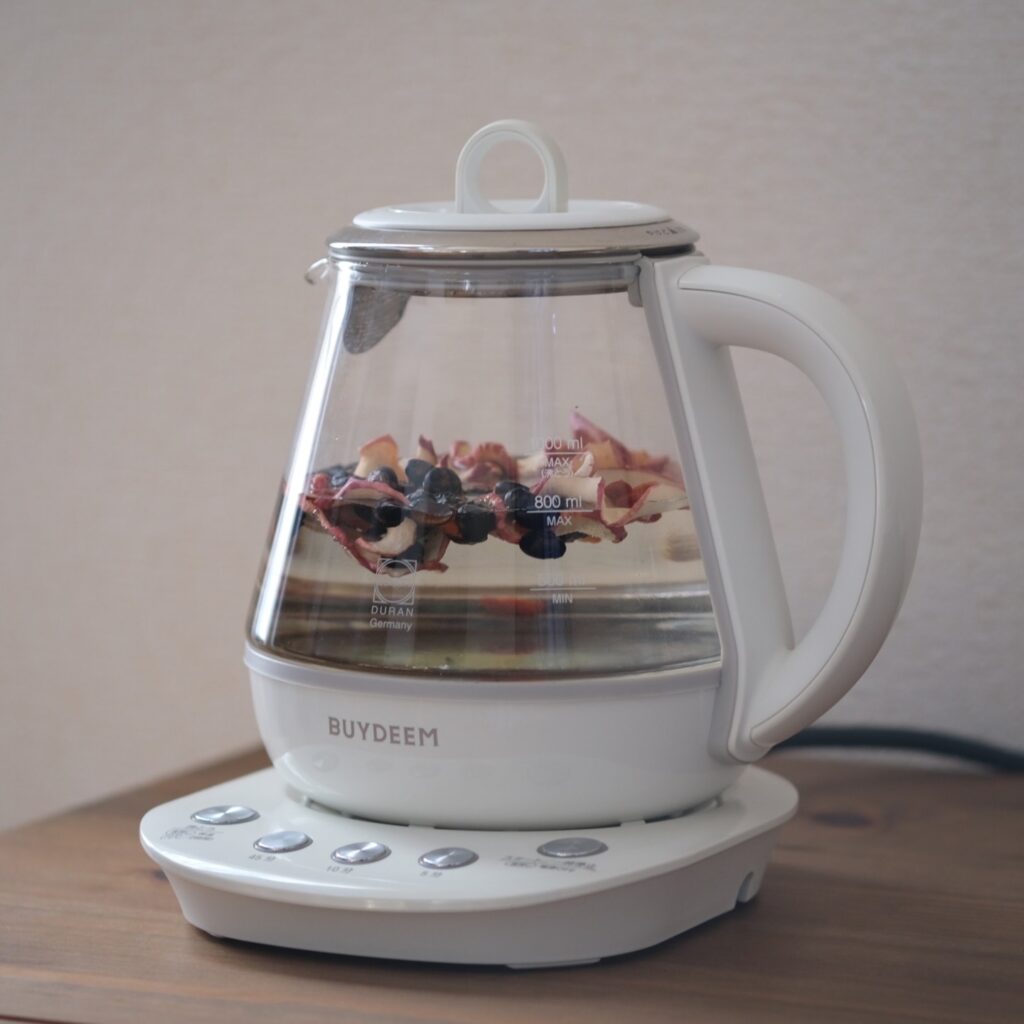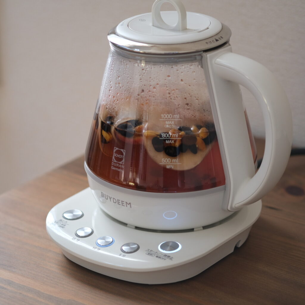 ❷BUYDEEM薬膳ティーポットにすべての材料を入れ、蓋をして10分ボタンとスタートを押す。