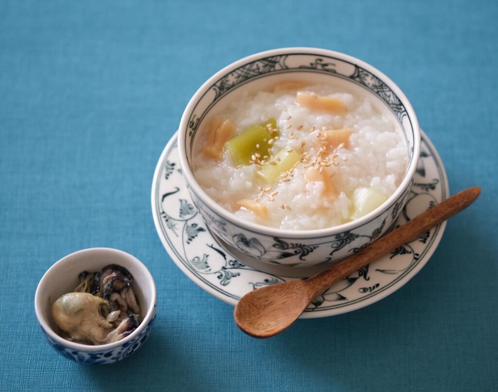 【如月の薬膳レシピ】干し貝柱の薬膳粥と牡蠣のコンフィ