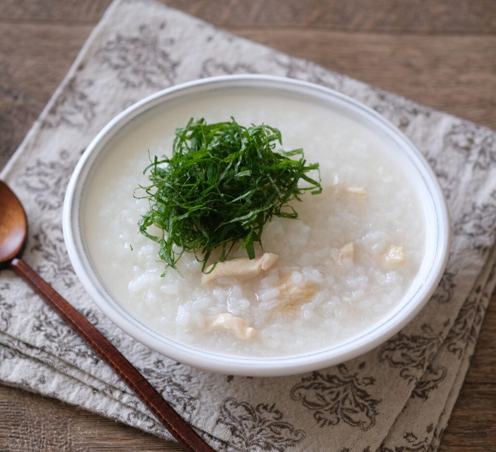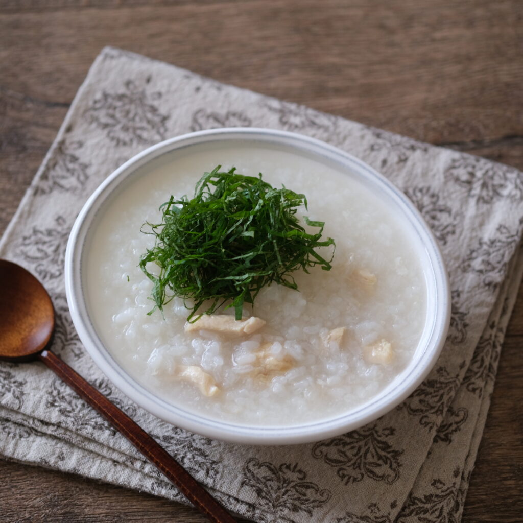 【卯月の薬膳レシピ】大葉たっぷり鶏がゆ