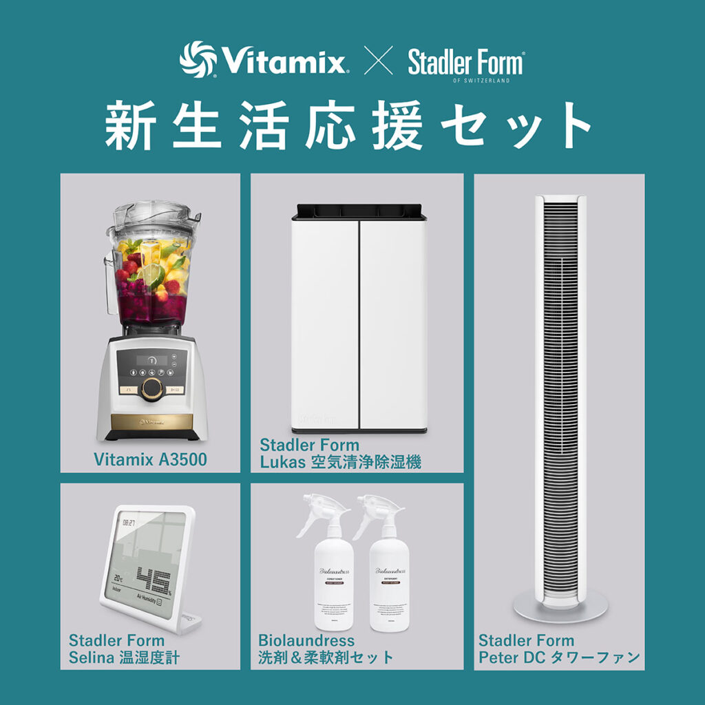Vitamixによる「健康食生活」、Stadler Formによる「快適空間」、そしてプレミアムケアによる「癒し」。この5点は単なる道具ではなく、暮らしの質を上げてくれる大切なパートナーです。