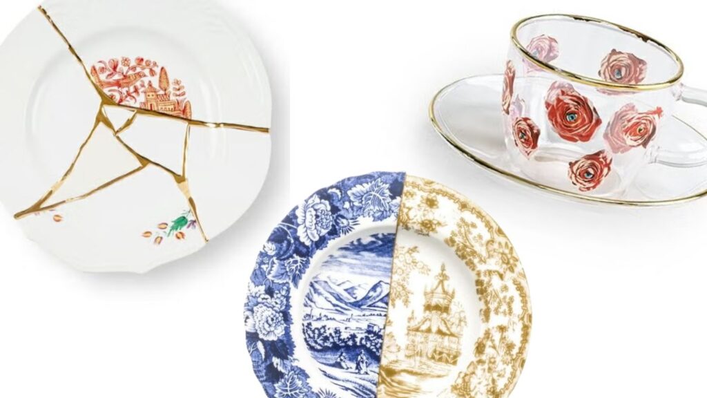 SELETTIのKintsugiシリーズから生まれたティーセットは、日本の伝統技法「金継ぎ」を現代的に再解釈したデザインが特徴。