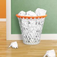バスケットゴールのデザインのゴミ箱はよく見かけますが、 この商品はボードの部分がなく、ネットの部分だけっだのが珍しくて 購入しました。 ゴミ箱では使用せず、バレーボールと布のボールを入れて飾っています。 たまに布のボールを投げ入れて遊んでいます。 シンプルでスッキリしたデザインが素敵で、面白い商品だと思います。