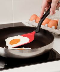 フライ返しとしてはもちろん、調理、盛り付け、カットもできて万能。置いても調理台が汚れないので手放せません。餃子用に、今までは無○良品の大きなフライ返しを使っていたのですがこちらの方が上手く返せて不要になりました。赤い色もテンションが上がります。