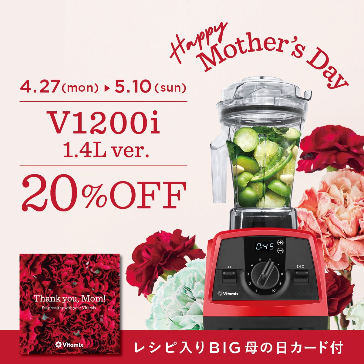 他の画像を見る 【公式】バイタミックス Vitamix ミキサーV1200i 2.0Lコンテナ レッド(単品)日本正規輸入代理店【母の日CP】【プレゼントCP】 ポイント10倍 定価 ¥ 77,999 のところ ¥ 62,400 税込 販売期間 〜 2026/05/10 10:00 お気に入りに登録する