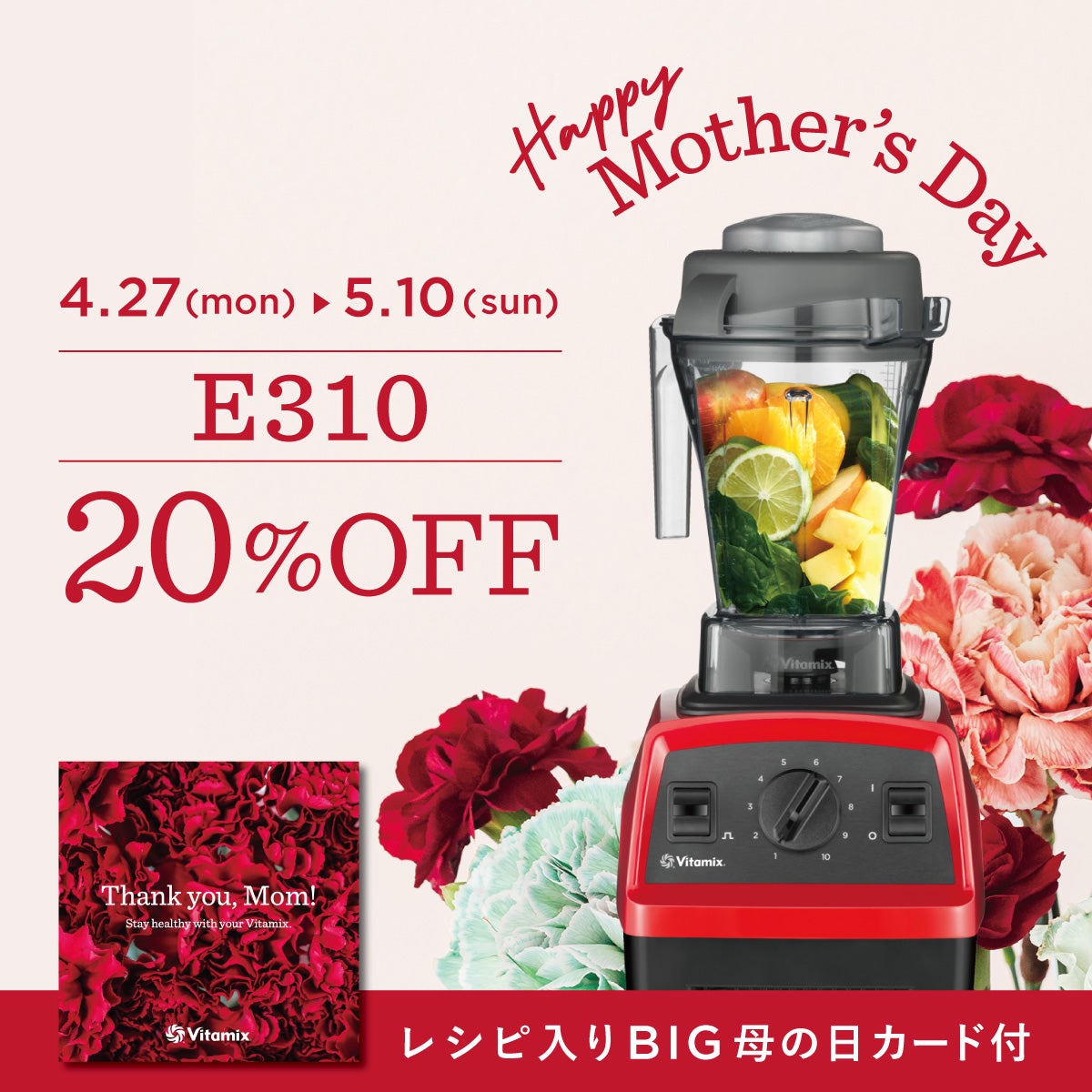他の画像を見る 【公式】バイタミックス Vitamix ミキサー E310日本正規輸入代理店【母の日CP】【プレゼントCP】 ポイント10倍 定価 ¥ 88,999 のところ ¥ 71,200 税込 販売期間 〜 2026/05/10 23:59 お気に入りに登録する