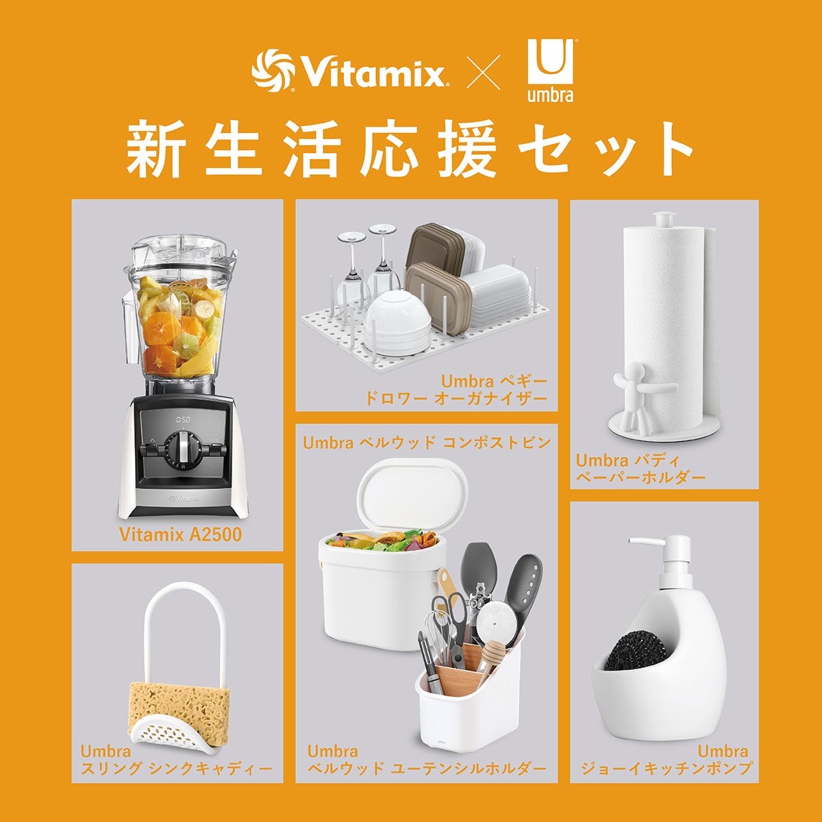 他の画像を見る 新生活応援セット UmbraキッチンコーディネートSET/Vitamix(バイタミックス) ポイント10倍 定価 ¥ 137,812 のところ ¥ 98,000 税込 お気に入りに登録する